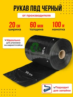 Упаковочная плёнка, рукав ПВД чёрный, (20 см, 60 мкм, 100 м)