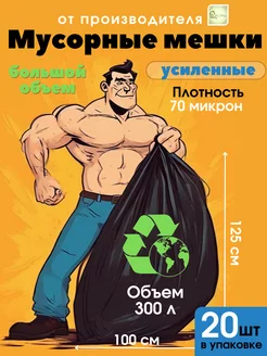 Мешки для мусора 300 л, (20 шт), усиленные