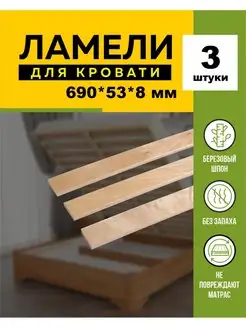 Ламели для кровати берёзовые 690х53х8 мм -в комплекте 3 шт