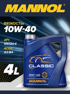 Масло моторное 10w 40 полусинтетическое Mannol Classic 4л