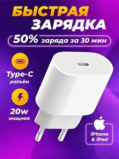 Зарядка для iphone андроид блок USB type-c быстрая 3А