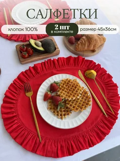 Салфетки сервировочные тканевые льняные с оборками 2 шт