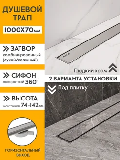 Трап для душа 1000х70мм под плитку вкладыш гладкий хром