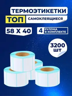 Термоэтикетки топ 58х40 мм (4 ролика по 800 шт)