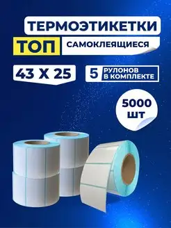 Термоэтикетки топ 43х25 мм (5 рулонов по 1000 шт.)