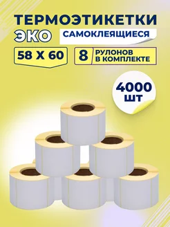 Термоэтикетки эко 58х60 мм, 8 рулонов по 500 шт