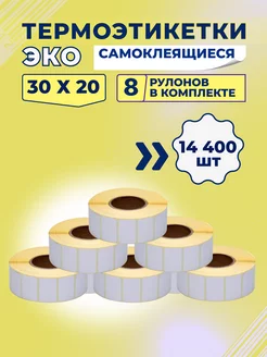 Термоэтикетки эко 30х20 мм, 8 рулонов по 1800 шт