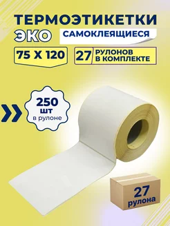 Термоэтикетки эко 75х120 мм, 27 рулонов по 250 шт