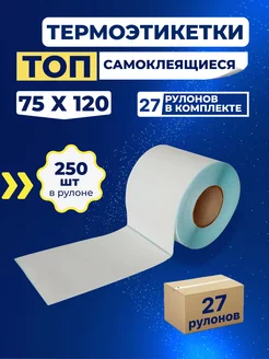 Термоэтикетки топ 75х120 мм (27 роликов по 250 шт.)