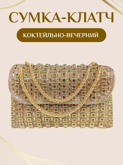 Сумка-клатч "Калейдоскоп" вечерняя кристаллами золотистая