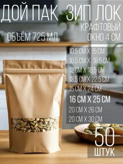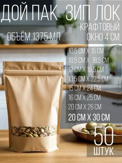 Дой пак зип лок пакет крафт 20*30см окно 4см 50шт