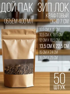 Дой пак зип лок пакет крафт 13.5*22.5см окно 7см 50шт