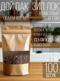 Дой пак зип лок пакет крафт 13.5*25.5см окно 7см 100шт