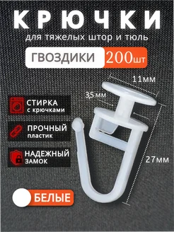 Прочные крючки для штор к потолочным карнизам 200 штук