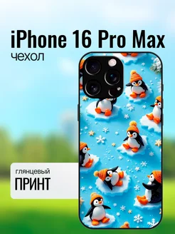 Чехол на iPhone 16 Pro Max принт с пингвинами