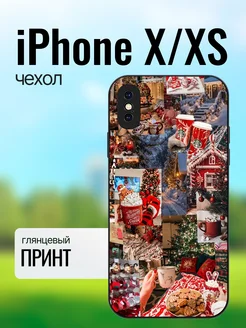 Чехол на iPhone X новогодний коллаж