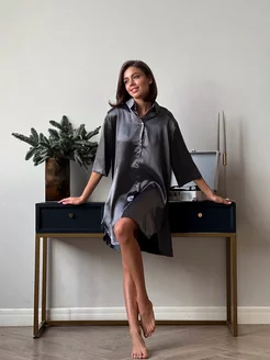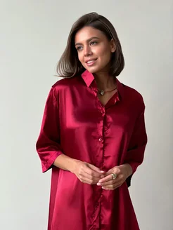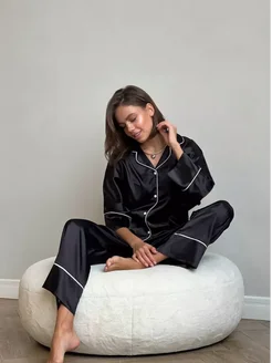Пижама со штанами и рубашкой шелковая с длинным рукавом