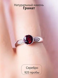 Кольцо серебро 925 широкое с натуральным камнем гранат