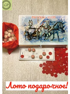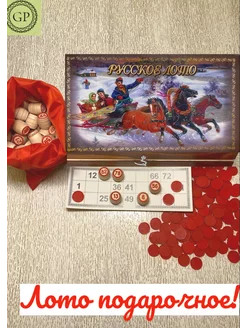Русское Лото в шкатулке "ТриБелыхКоня"подарочное цвет печать