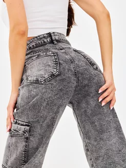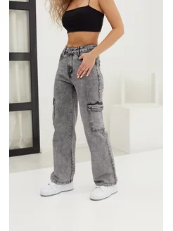 Джинсы карго с карманами широкие