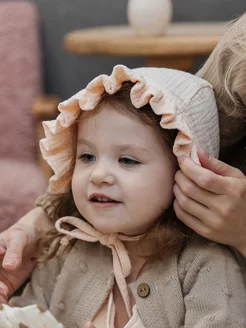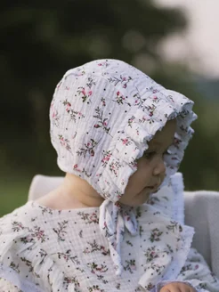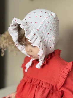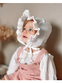 Лёгкий чепчик муслиновый с рюшей (шапочка) однослойный