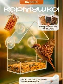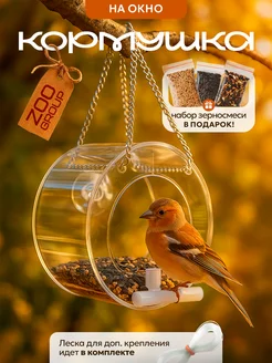 Кормушка для птиц на окно на присосках прозрачная уличная