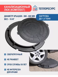 Люк канализац тип ЛМ (легкий малый) d-580 до 1,5 т. (черный)