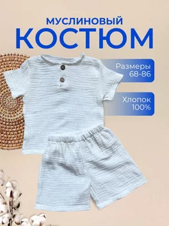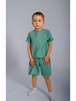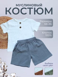 Костюм для мальчика с шортами и рубашкой летний муслин