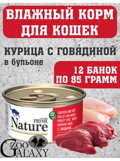 Корм NATURE для кошек курица и говядина в бульоне 12х85 г