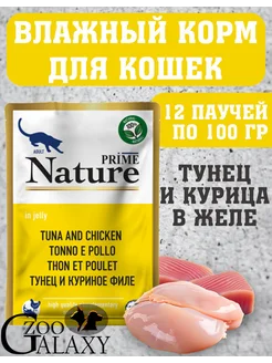 Корм NATURE для кошек паучи Тунец и курица в желе 12х100г