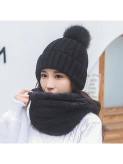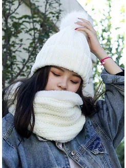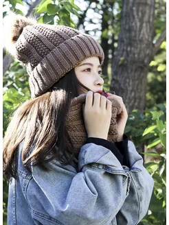 Шапка весенняя теплая с бубенчиком и снуд (шарф) комплект