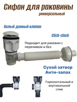 Сифон для раковины с донным клапаном Click-clack сухой затво