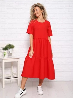 Платье летнее больших размеров без рисунка штапель