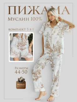 Пижама муслиновая со штанами и шортами комплект 3 в 1