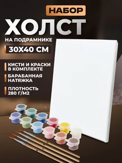 Холст и краски с кистями на подрамнике 30х40 1 шт