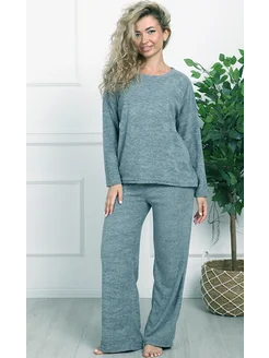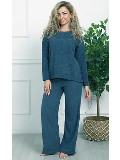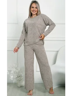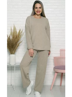 Костюм махровый теплый со штанами оверсайз в рубчик