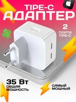 Быстрая зарядка для iphone Блок Type-C 2 разьема
