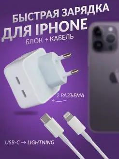 Быстрая зарядка для iphone Блок Type-C 2 разъема и кабель