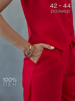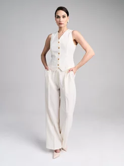 Летний деловой брючный костюм с жилеткой и брюками лен
