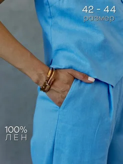 Летний костюм двойка из льна жилетка и брюки широкие палаццо