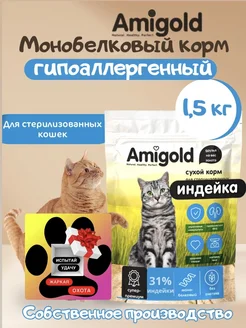 Корм для стерилизованных кошек сухой 1,5 кг индейка