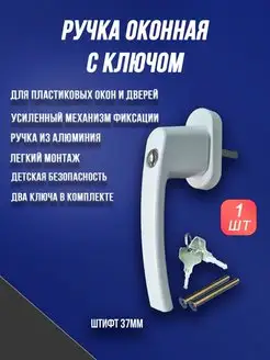 Ручка оконная с замком белая с ключом блокиратор 1шт