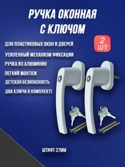 Ручка оконная с замком белая с ключом блокиратор 2шт