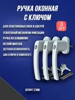 Ручка оконная с замком белая с ключом блокиратор 3шт
