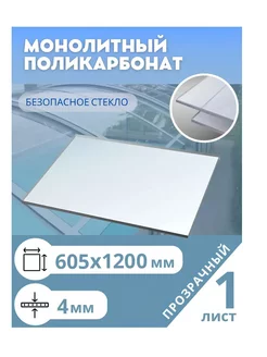 Монолитный поликарбонат 4 мм 605*1200 мм прозр