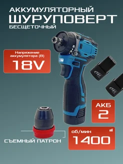 Шуруповерт Аккумуляторный Бесщеточный 18V с набором оснастки