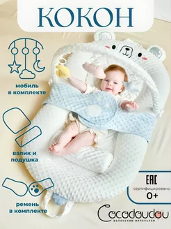 Кокон для новорожденных с мобилем, подушкой и валиком Мишка