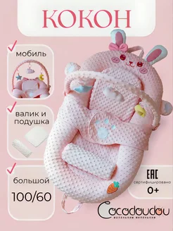 Кокон для новорожденных с подушкой, валиком и мобилем Зайка
