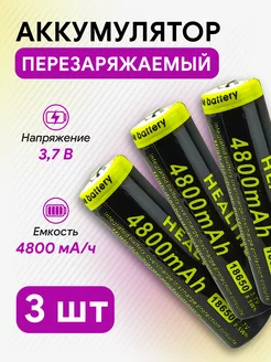 Аккумулятор батарейка для фонарика 18650 (4800 mAh), 3шт уп