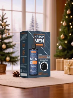 Подарочный набор мужчине 3 в 1 Шампунь + мочалка для душа